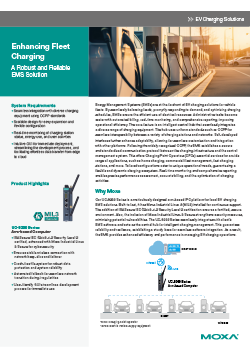 Explore how Moxa's reliable products play a crucial part in EV charging solutions. This application showcases how the UC-8200 enhances EMS for vehicle fleets, offering advanced cybersecurity and seamless integration of diverse charging equipment. Learn about its efficiency in real-time monitoring and reporting. Download now to see how this robust platform supports a range of EV charging applications.