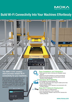 Machine builders and system integrators are often looking for compact and rugged WiFi devices that they can integrate into their machines for stable and reliable operation. The AWK-1137C wireless client is tailor-made for machine builders who need to enable a reliable Wi-Fi network for a variety of industrial applications.
