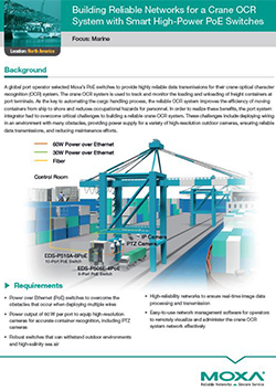 City utilities and industry sectors are being connected to video surveillance systems in order to create a smarter world with enhanced safety and security. To accommodate the growing connectivity and power needs of security infrastructures, Moxa's PoE Ethernet switches feed up to either 36 W or 60 W per PoE link to deliver full power for PTZ cameras and wireless devices through a switch with up to 48 Gigabit PoE+ ports. Download the application note to know how Moxa helps our customers.