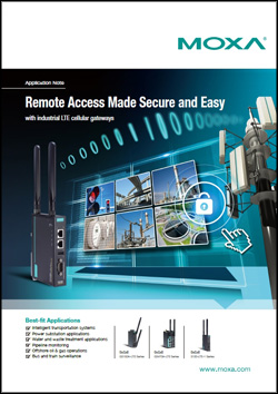 Learn how remote access is made secure and easy with LTE cellular gateways. This application note includes information on Moxa's OnCell LTE products and how they assist with intelligent transportation systems, power automation, and water treatment automation.