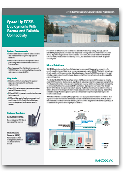 For remote or difficult-to-wire commercial and industrial battery energy storage system (C&I BESS) deployments, LTE networks help lower cabling costs and streamline installation efforts. Learn how our OnCell G4308-LTE4 Series industrial secure cellular routers not only solve these critical connectivity challenges but also enable secure remote support for distributed, unmanned C&I BESS sites.