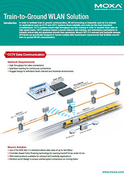 Rail systems deployed on modern trains are designed to provide passengers with a great travel experience and guarantee their safety. In order to achieve this for applications such as passenger Wi-Fi or CCTV, there has to be bi-directional communication between trains and the trackside. When trains are in motion, one of the most effective ways to transmit data from trains to the trackside is to utilize wireless technology. This application notes include three different wireless solutions that can be used for train-to-ground communication.